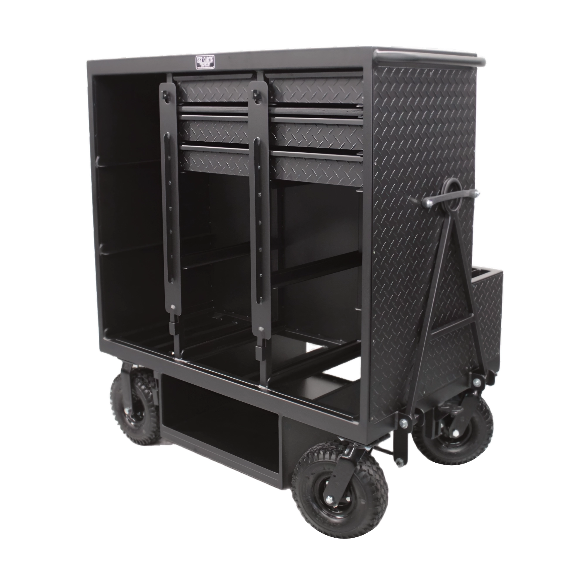 The Speedrail Cart is the ultimate organizational solution for professionals requiring a durable and versatile storage system. Weighing 345 lbs, this robust cart is designed for demanding environments such as film production, construction, and heavy-duty industries.